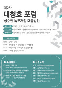 가을 늦도록 식수원을 녹색으로 물들인 대청호 녹조 문제에 대해 전문가와 시민단체, 언론인이 모여 발표하고 토론하는 시간이 마련된다. (사)대청호보전운동본부는 충북물포럼과 함께 3일 오후 2시 청주시 흥덕구 청주국제에코콤플렉스에서 '제2차 대청호 포럼'을 개최한다고 밝혔..