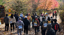 "단풍 좋다 해서 보문산 찾아왔어요." 전남 광주에서 대전 보문산을 찾은 김희주(39) 씨와 박광택(39) 씨는 29일 보문산둘레산길에서 열린 '2025 보문산 행복숲 둘레산길 걷기대회'에 우연히 참여하게 됐다. 박 씨는 "단풍이 절정이라 산행하기 좋은 날"이라며 행사..