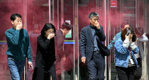 7일 안전공업 손주환 대표와 상무 등 임직원들이 화재 희생자 합동분향소가 이전한 문평공원을 찾아오자 유가족들이 반발하며 손 대표를 쫓아내고 있다. 이성희 기자 token77@