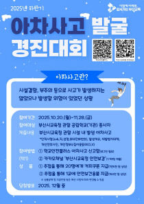 부산교육청이 근로자들의 자율적인 유해·위험 요인 발굴을 통해 산업재해를 예방하고자 하반기 '아차사고' 발굴 경진대회를 개최한다. 부산시교육청은 지난 20일부터 다음 달 28일까지 관내 학교(기관) 근로자를 대상으로 '하반기 아차사고 발굴 경진대회'를 개최한다고 밝혔다...