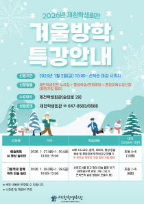 제천학생회관이 겨울방학을 맞아 인공지능(AI)과 예술을 접목한 창의·예술 체험 중심의 특별 프로그램을 운영하며 학생들의 상상력과 표현력 키우기에 나선다. 이번 겨울방학 특강은 오는 1월 27일부터 30일까지 진행되며, 디지털 기술과 미술 놀이를 결합한 다채로운 체험 프..