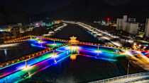 매서운 한파 속 괴산지역 곳곳에 낮과 밤을 가리지 않고 이색적이며 아름다운 풍경이 연출되고 있다. 괴산읍 도심을 흐르는 성황천·동진천 일대가 최근 강추위로 수면이 꽁꽁 얼어붙으면서 두 하천을 연결하는 에코브릿지 하부에 설치된 다채로운 색감의 경관조명이 얼음 위로 선명하..