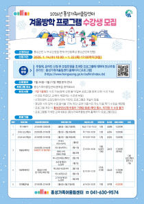 홍성가족어울림센터가 관내 유아부터 고등학생까지를 대상으로 2026년 겨울방학 특별 프로그램 수강생 모집에 나섰다고 13일 발표했다. 센터 측은 이번 프로그램을 놀이 중심의 체험형 교육으로 구성하고, 보호자와 자녀가 함께 참여할 수 있는 수업을 포함해 가족 단위 문화 활..