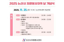 헌신과 열정으로 논산시를 더욱 행복하게 만든 자원봉사자들의 노고를 기리는 ‘2025 논산시 자원봉사자의 날 기념식’이 25일 오후 1시 30분 논산아트센터 대공연장에서 개최된다. 이날 행사를 주최한 논산시 자원봉사센터(센터장 김동백)는 “한 해 동안 지역 곳곳에서 나눔..