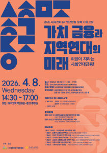 "가치 금융과 지역연대의 미래-희망이 자라는 사회연대금융" (사)대전마을기업연합회(회장 김미정)는 오는 4월 8일 오후 2시 30분 대전사회적경제혁신타운 4층 대회의실에서 (재) 아름다운재단과 공동 주최·주관으로 2026 정책기획포럼 '가치 금융과 지역연대의 미래-희망..