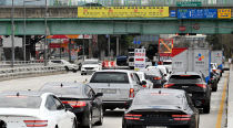 대전 천변도시고속화도로 원촌육교 주변 긴급 옹벽 보강 공사로 차량이 전면통제된 31일 원촌교를 비롯한 도심이 교통혼잡을 빚고 있다. 이성희 기자 token77@