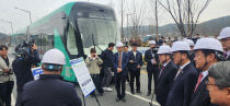 "트램이야? 버스야?" 신교통수단으로 주목받는 3칸 굴절 차량이 대전에서 시범운행을 시작했다. 1일 서구 도안동 호수공원 일원에서는 전국 최초 도입을 앞둔 3칸 굴절차량의 본격 운행에 앞서 차량 안전성과 도로 적합성을 점검하는 시범운행이 진행됐다. 모습을 드러낸 3칸..