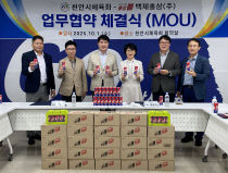 천안시체육회(회장 한남교)는 1일 백제홍삼㈜와 체육인 건강증진을 위해 업무협약을 체결했다. 이번 협약은 지역 체육인의 건강증진과 시민 체육문화 활성화를 위해 마련됐다. 이날 협약에 따라 백제홍삼은 2년 동안 천안시체육회에서 개최하는 각종 대회에 삼대인 홍삼볼 등 자사..