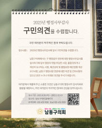 인천시 남동구의회는 2025년 행정사무감사에 앞서 구민들의 의견을 듣기 위해 다양한 제보와 의견을 접수한다고 28일 밝혔다. '행정사무감사'는 의회의 집행부 감시권의 하나로, 남동구의회는 11월 개최 예정인 제308회 정례회에서 남동구에 대한 행정사무감사를 실시할 예정..