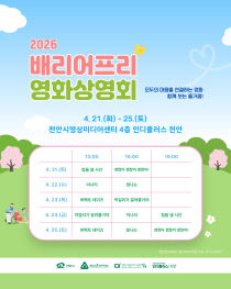천안문화재단은 21~25일까지 천안시영상미디어센터에서 '배리어프리 영화상영회'를 운영한다고 밝혔다. 배리어프리상영회는 장애와 비장애의 경계를 넘어 모든 시민이 함께 영화를 즐기고, 문화로 소통할 수 있도록 마련됐다. 이번 상영작은 힘을 낼 시간, 괜찮아 괜찮아 괜찮아!..