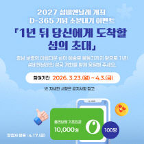 섬비엔날레조직위원회가 2027년 개최 예정인 섬비엔날레의 전국적 인지도 확보를 위해 대국민 온라인 참여 이벤트에 나섰다. 조직위는 23일 섬비엔날레 개최 D-365일을 맞아 이날부터 4월 3일까지 약 2주간 온라인 참여 이벤트를 진행한다고 밝혔다. 행사 개최 1년여를..