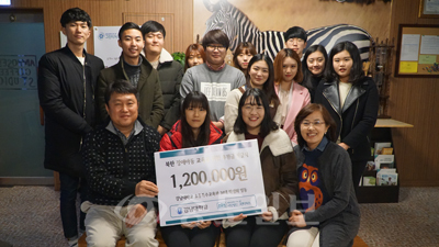 이날 전달한 후원금은 강남대학교 초등특수교육과 학생들이 ‘동탄보건소 장애아동재활센터’에서 미술치료를 받는 학생들에게 미술수업을 진행하고,수업시간에 장애학생들이 만든 미술작품(손가락에 물감을 묻혀 도안 종이 위에 찍어 완성시킨 파우치와 에코백)을 강남대학교 축제(백양체전)기간에 판매하여 얻은 수익금으로 그린티처스를 통해 특수교육지원비로 쓰일 예정이다.