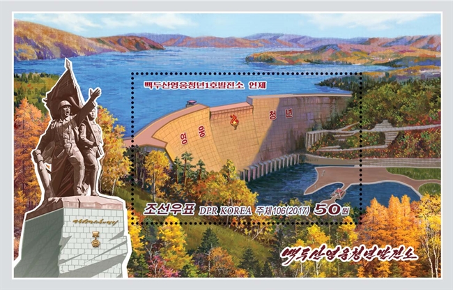 북한, 백두산영웅청년발전소 소개 우표 발행