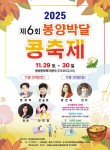 한때 국민가요 '울고 넘는 박달재'로 널리 알려진 충북 제천시 봉양읍에서 지역 명품 특산물인 '박달 콩'을 주제로 한 제6회 봉양 박달 콩 축제가 오는 11월 29일부터 30일까지 이틀간 봉양읍 주포리 문화복지센터 일원에서 열린다. 봉양읍 축제 추진위원회가 주관하고 제천시와 봉양읍, 봉양농협 등이 후원하는 이번 축제는 지역 농업인들이 한 해 동안 정성으로 재배한 박달 콩을 직거래 판매해 농가 소득을 높이고, 시민들에게는 신선하고 품질 좋은 콩을..