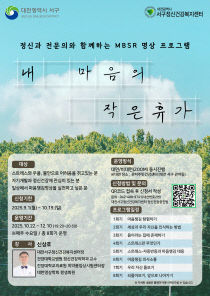 대전 서구가 구민들의 정신건강을 지키기 위해 명상 프로그램을 운영한다. 9일 서구에 따르면 스트레스 완화와 정신건강 증진을 위해 정신과 전문의와 함께하는 '마음 챙김 명상(MBSR)' 프로그램 '내 마음의 작은 휴가' 참여자를 10월 19일까지 모집한다. MBSR은 미..