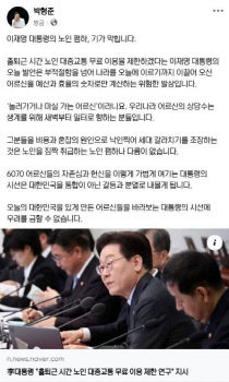 박형준 부산시장이 이 대통령의 노인 대중교통 제한 검토를 놓고 복지 가치와 효율 사이의 본질적인 질문을 던졌다. 박 시장은 24일 자신의 사회관계망서비스(SNS)를 통해 어르신을 예산과 효율의 숫자로만 보는 시각이 세대 분열을 조장한다고 강력한 입장을 밝혔다. 그는 이..