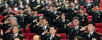 21일 대전경찰청 김용원홀에서 열린 제80주년 경찰의 날 기념식에서 최주원 대전경찰청장을 비롯한 경찰과 내빈들이 국기에 대한 경례를 하고 있다. 이성희 기자 token77@