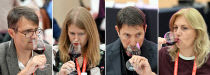 21일 대전 유성구 대전컨벤션센터에서 열린 2025 대전국제와인엑스포 아시아 와인트로피에서 와인 전문가들이 블라인드 테스트를 하고 있다. 이성희 기자 token77@