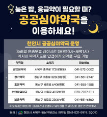 천안시가 공공심야약국을 5개소로 확대 운영한다고 12일 밝혔다. 시는 심야 시간대 의약품 구입 불편을 해소하기 위해 오후 10시~오전 1시까지 공공심야약국을 지정·운영하고 있다. 시는 국비를 추가 확보함에 따라 공공심야약국 1개소를 추가 지정했고, 공공심야약국은 쌍용동..