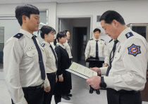 금산소방서(서장 김태형)는 2일 본서 행정동 서장 집무실에서 1일 자 근속승진자에 대한 임용장 교부식을 가졌다. 이번 임용장 교부식은 장기간 성실히 근무하며 조직 발전과 지역 안전에 기여한 직원들의 노고를 격려하기 위해 마련됐다. 승진 대상자는 소방장 김시환(소방위 승..
