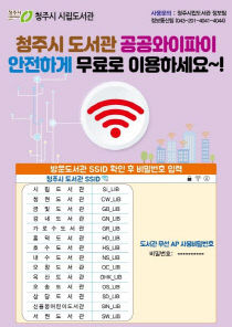 청주시는 도서관 이용자들이 안심하고 무선인터넷을 이용할 수 있도록 공공도서관에서 개방형 무료 와이파이(Wi-Fi)를 강화했다고 3일 밝혔다. 기존 와이파이에 무선 보안 프로토콜 'WPA3'(Wi-Fi Protected Access 3)를 적용한 것으로, 대상지는 청주시..