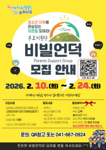 서산시 성연청소년문화의집이 지역 청소년의 건강한 성장 지원을 위한 부모 참여 프로그램을 운영한다. 서산시 성연청소년문화의집(관장 원훈희)은 2026년 한 해 동안 활동할 부모지원단 '비빌언덕' 참여자를 오는 2월 10일부터 24일까지 모집한다고 밝혔다. 부모지원단 '비..