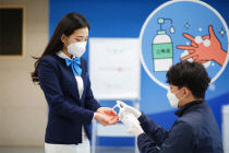 대전시선거관리위원회는 13일 홍보대사의 4·15 투표참여 행동수칙 시연을 통해 투표참여를 독려했다. 행동수칙은 마스크쓰기, 발열체크하기, 손소독하기, 비닐장갑착용이다. 방원기 기자 bang@