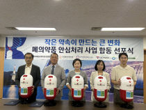 건강보험심사평가원 대전충청본부(본부장 김연숙)는 22일 대전충청본부 회의실에서 '폐의약품 안심처리 사업 동행 선포식'을 개최했다. 이번 선포식은 지역사회 환경과 안전을 위해 대전충청본부 주관으로 대전시 약사회, 대전창조경제혁신센터, 대전YMCA, 한국환경공단 충청권환경..