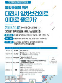 대전지역보건의료혁신포럼과 충남대 라이즈사업단은 10월 1일 오후 7시, 대전 을지대병원 본관 2층 세미나실에서 '통합돌봄을 위한 대전시 일차보건의료, 이대로 좋은가?'를 주제로 시민정책 포럼을 개최한다. 이번 포럼은 대전의료원 설립에 이어, 2026년 시행을 앞둔 '노..