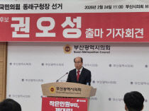 권오성 전 부산시의원이 24일 시의회에서 기자회견을 열어 골목 경제와 교육 경쟁력을 살려 동래를 대전환하겠다는 포부와 함께 동래구청장 출마를 공식 선언했다. 국민의힘 예비 후보로 나선 권오성 전 부산시의원은 "동래의 골목에서 자라고 학교에서 배우며 역사를 체험한 진짜..