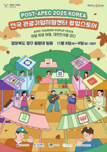 광주관광기업지원센터가 오는 11월 8일부터 9일까지 경상북도 경주시 봉황대 일원에서 열리는 '포스트 APEC 팔도 관광기업 장터'에 참가해 광주 지역 관광기업의 우수 콘텐츠를 전국에 선보인다. 행사는 경상북도문화관광공사가 주최하고, 전국 8개 지역관광기업지원센터가 공동..