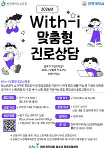 인하대학교 인하 위드아이 청소년 진로지원센터는 지역 청소년들의 체계적인 미래 설계를 돕기 위해 '2026 With-i 맞춤형 진로상담' 프로그램을 본격적으로 운영한다고 14일 밝혔다. 이번 프로그램은 청소년의 진로발달 단계를 고려한 전문 검사와 맞춤형 상담을 바탕으로..