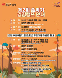 광암탑동주민위원회(위원장 이흥구)와 다우리협동조합(대표 이학훈)은 지난 15일 '따뜻한 겨울나기 사랑의 김장 나눔' 행사를 성황리에 개최했다. 이번 행사에는 두 단체를 비롯한 봉사자 40여 명이 참여해 아침 일찍부터 김치를 정성껏 담갔으며, 완성된 김장김치 300kg은..