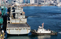 미 해군 해상수송사령부 소속 4만 톤급 군수지원함 'USNS 아멜리아 에어하트함이 12일 HJ중공업 부산 영도조선소에 입항한 것으로 확인됐다. HJ중공업이 지난해 12월 미 해군 보급체계사령부(NAVSUP)로부터 수주한 이 함정은 길이 210m, 너비 32m 규모로 미..