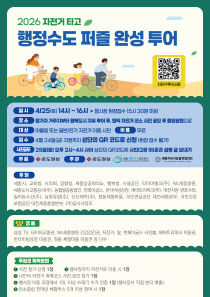 "나만의 숨겨둔 자전거 코스를 자유로이 돌아 사진 공모하고 경품도 타자." 2026 자전거 타고 '행정수도 퍼즐 완성' 투어가 오는 25일 토요일 오후 2시부터 세종시 행복도시 일대에서 열린다. 이 행사는 매년 4월 22일 지구의 날과 자전거의 날을 기념해 지속되고 있..