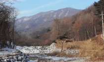 장령산 1290·2 -충북 옥천군 군서면. 해발 656m 단풍잎 붉게 물든 장령산 오르막길 청자 빛 하늘에선 푸른 물이 흘러넘쳐 칠산우 여섯 마리들 오순도순 올라라.