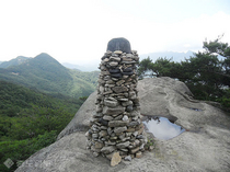 대왕봉 1283·2 -경북 상주시 화북면 입석리. 해발 819m 솔바람 듬뿍 마셔 가슴은 부풀어라 묵중한 암벽 위에 공들인 돌탑섰네 대왕봉 의연한 자태 가슴 가득 새기네