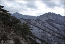 아미산峨嵋山 1344·2 -경북 군위군 고로면. 해발 737.3m 바위틈 사이사이 뿌리내린 소나무들 바람에 실려오는 솔향기 그윽하다 아미산 고스락 올라 호연지기 맛본다