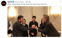 기생충' 송강호의 셀피가 눈길을 끌고있다.최근 '기생충' 송강호의 셀피가 화제가 되면서 누리꾼들의 시선을 끌고있다.영화 ‘기생충’의 미국 배급사 네온은 공식 트위터 계정에 “송강호 팬 브래드 피트가 송강호를 만났을 때”라는 글과 함께 한 장의 사진을 게재했다.공개된 사..