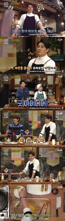 '수미네반찬' 이태곤이 라이스페이퍼 비빔밥쌈을 보고 새로운 아이디어를 제시했다.최근 방송된 tvN '수미네 반찬'에서는 이태곤이 라이스페이퍼 비빔밥쌈을 보며 달걀물에 부쳐보자는 아이디어를 내 박수를 받았다.이날 이태곤의 고사리도미찜을 맛 본 김수미는 칭찬하며 "이렇게..
