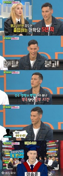 '비스' 전 농구선수 이승준이 어학당에 사연을 공개했다. 최근 방송된 케이블채널 MBC에브리원 '비디오스타'('비스')에는 전 농구선수 이승준, 쇼트트랙선수 곽윤기, 태권도선수 이대훈, 골프선수 홍순상, 전 배구선수 김요한이 출연했다. 이날 2016년 은퇴 후 3대3..