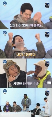 '친한예능' 브루노가 멤버들 가운데 신체 나이 1위를 차지했다. 개그맨 김준호는 꼴찌로 굴욕을 맛봤다. 최근 방송된 MBN 예능프로그램 '친한 예능'에서는 강원도 강릉으로 떠난 멤버들의 모습이 그려졌다. 이날 브루노, 샘 해밍턴, 로빈, 샘 오취리, 최수종, 김준호,..