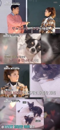 '개는훌륭하다' 김지민이 최근 유기견을 입양했다고 밝혀 눈길을 모았다.최근 방송된 KBS2 ‘개는 훌륭하다’에서는 일일 제자로 코미디언 김지민이 출연했다.김지민은 반려견 느낌이와 나리를 키우고 있다고 밝혔다. 김지민은 첫째 느낌이에 대해 “장모 치와와다. 강아지 프로그..