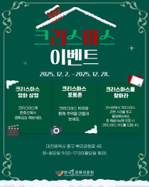 "가족과 함께 한효진으로 놀러오세요." 한국효문화진흥원(원장 김기황. 이하 '한효진')은 연말을 맞아 오는 28일까지 기관 방문객을 대상으로 '크리스마스 특별 이벤트'를 진행한다. 이번 이벤트는 한효진을 찾는 시민과 가족 단위 방문객을 위해 마련된 행사로, 한효진 곳곳..