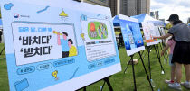 한글날인 9일 대전시청 남문광장에서 '함께 한글'이란 주제로 기념행사가 열려 행사장을 찾은 시민들이 한글의 올바른 맞춤법과 정확한 표현을 보고 있다. 이성희 기자 token77@