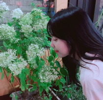 공개된 사진 속 채경은 꽃을 바라보며 행복한 미소를 짓고 있다.