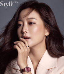 공개된 사진 속 김희선은 핑크계열의 자켓을 입고, 한 브래드의 악세사리..