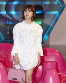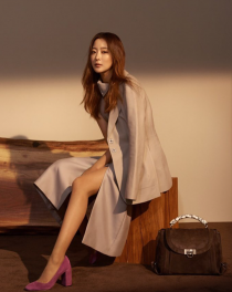공개된 사진 속 김희선은 살바토레 페라가모의 차분한 그레이 재킷과 스커트에 퍼플 힐을 포인트로 매치해..