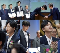 박해진은 5일 오후 서울시 중구 서울시청 다목적홀에서 열린 ‘2017 서울사회복지대회’에서 박원순 서울시장으로부터 서울특별시장상 자원봉사자 부문상을 받는..