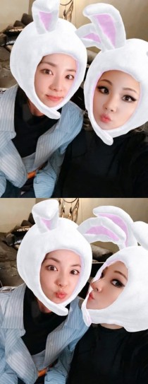 공개된 사진에는 귀여운 매력을 발산 중인 산다라박과 씨엘의 모습이 담겨있다. 두 사람은 귀여운 토끼 모자 스티커를 합성..